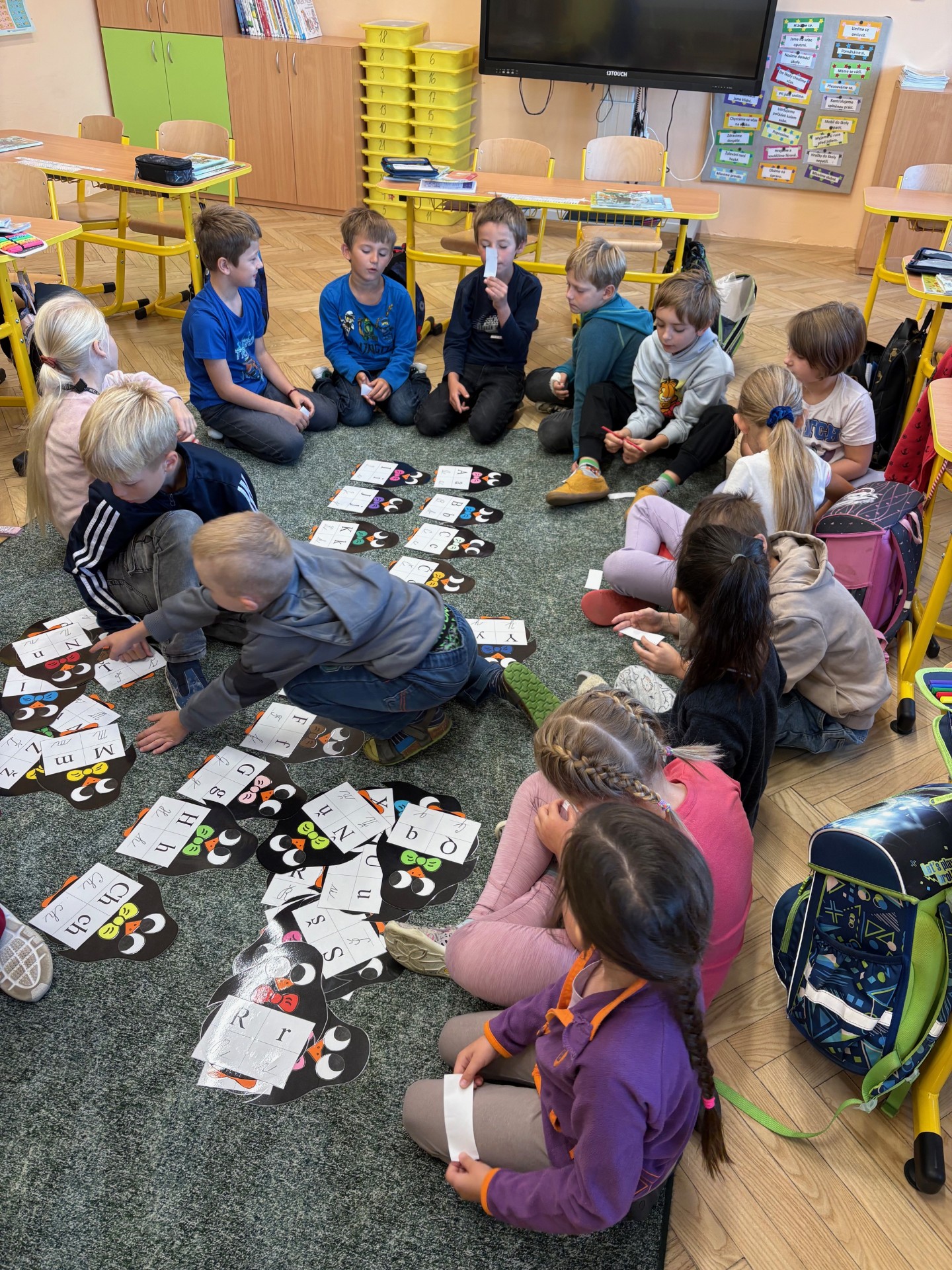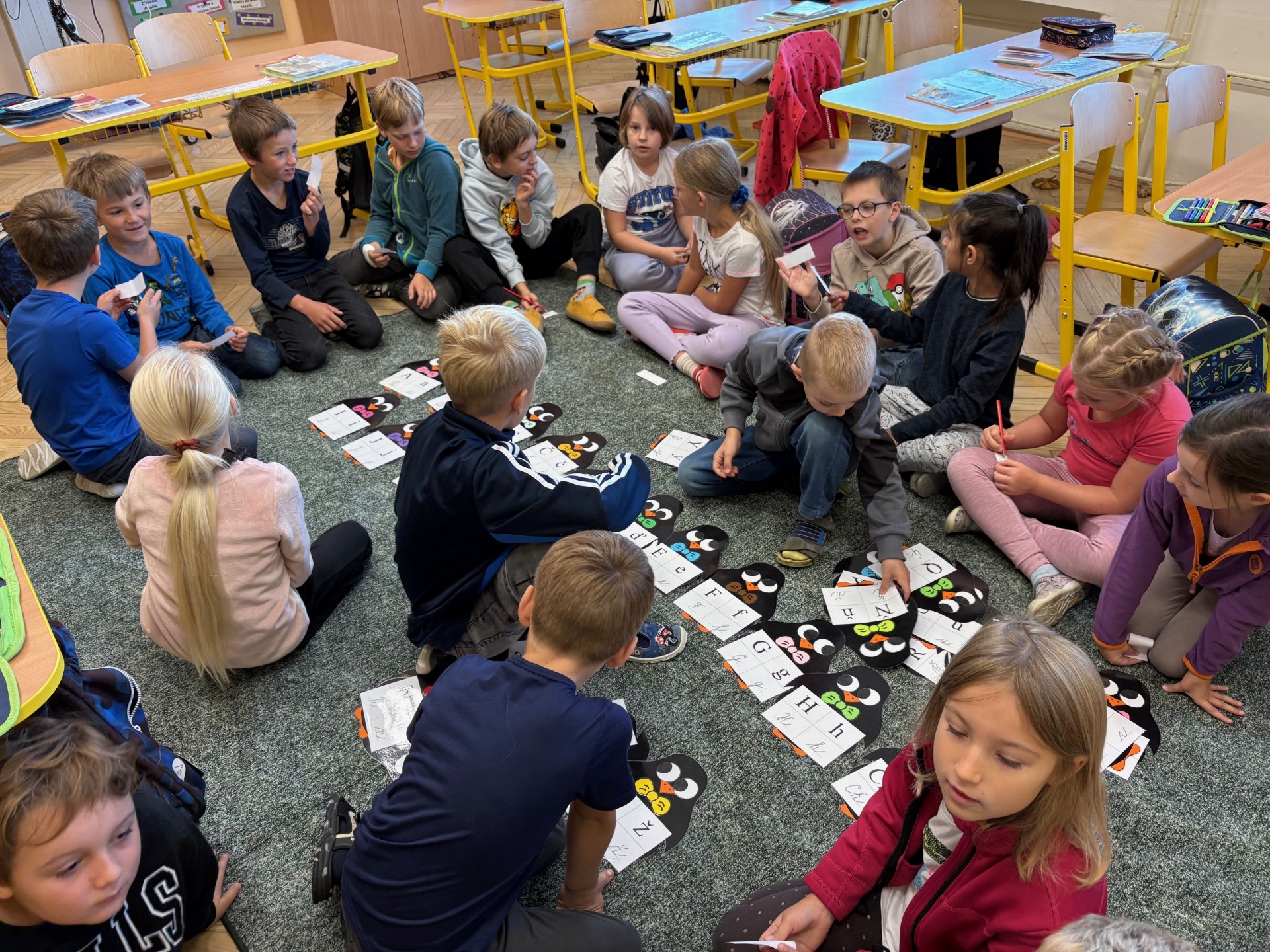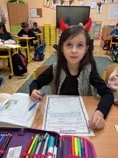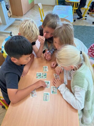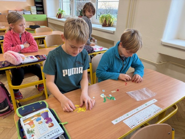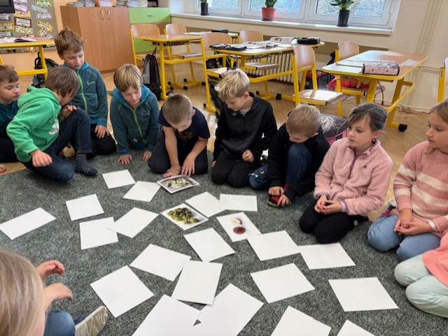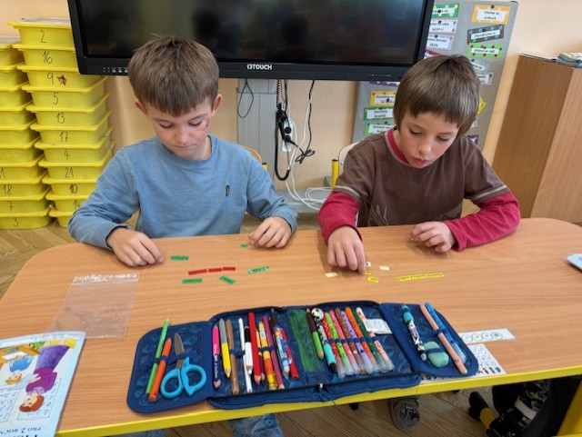 Ve třídě máme mnoho aktivit, které nás učí třídit obrázky a řadit podle pravidel. Připomněli jsme si také Halloween – ve skupinách jsme pracovali na zábavných úkolech.
