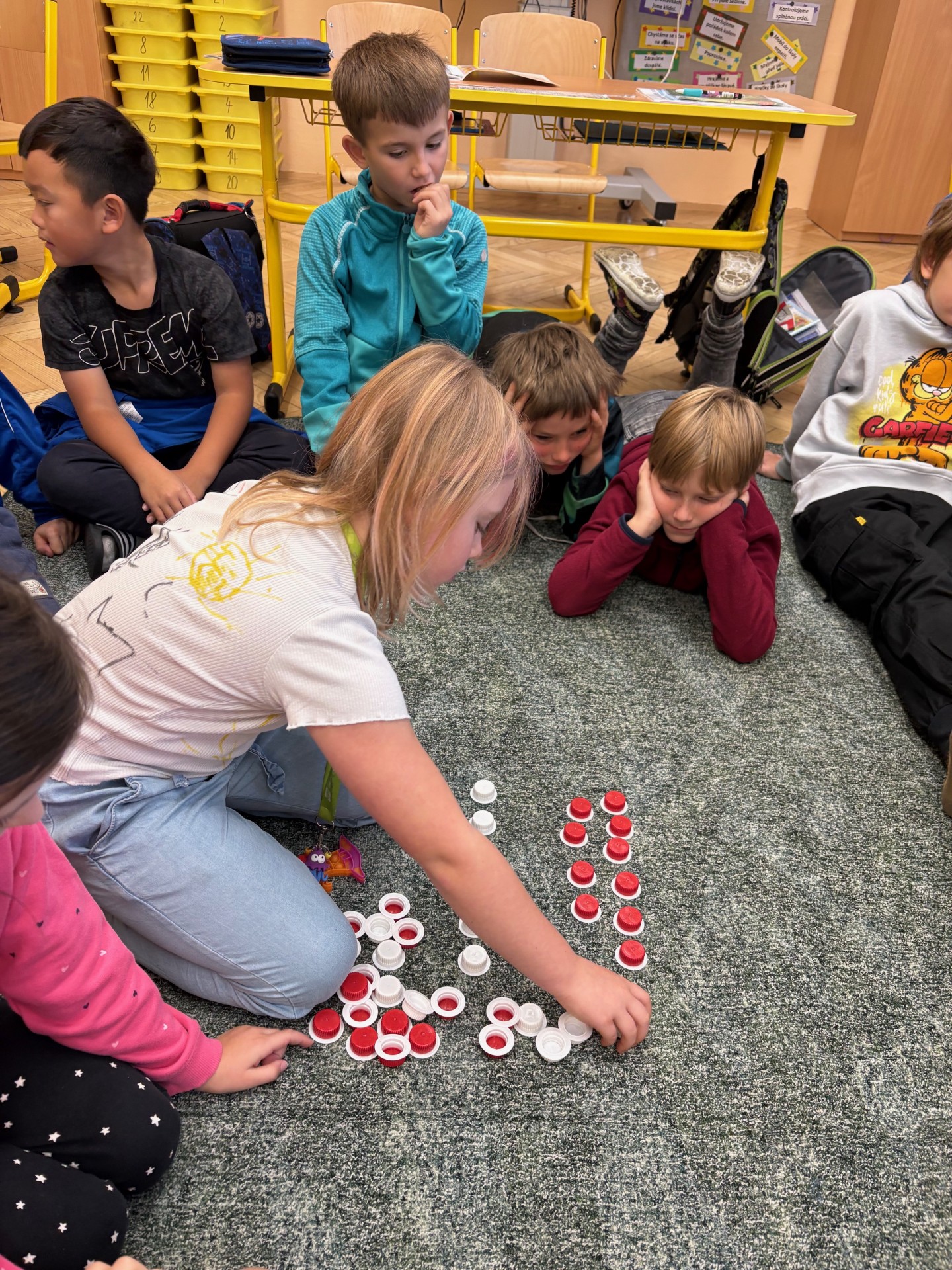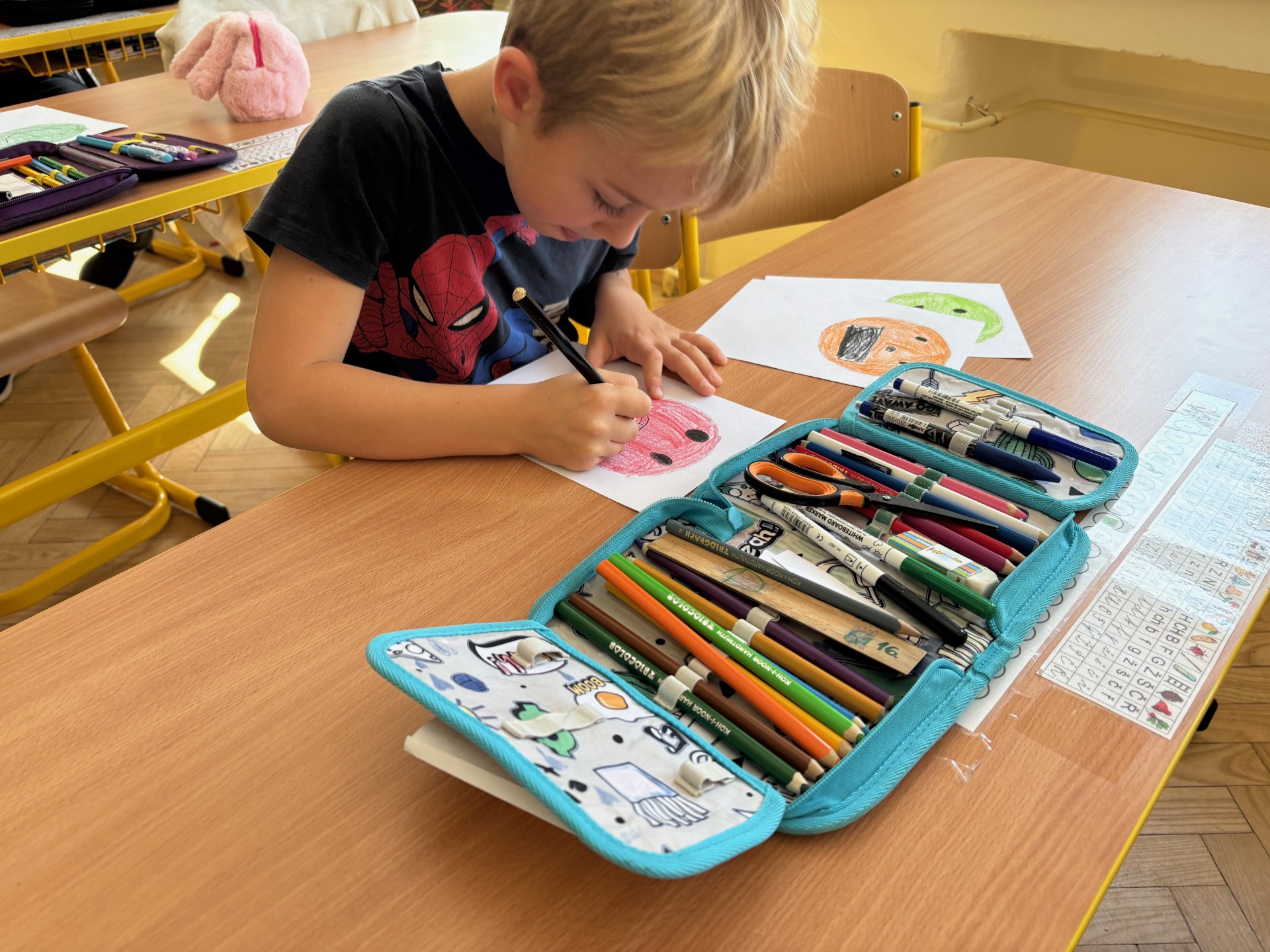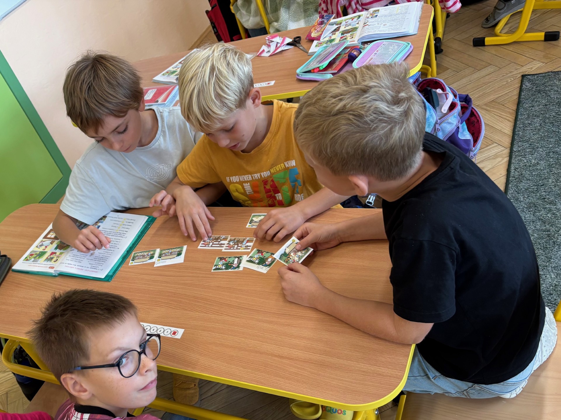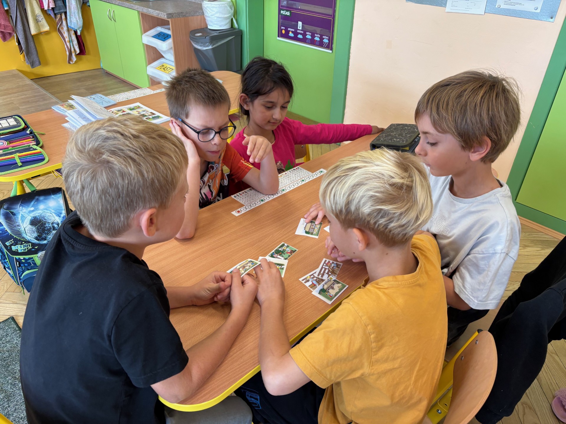 Ve třídě máme mnoho aktivit, které nás učí třídit obrázky a řadit podle pravidel. Připomněli jsme si také Halloween – ve skupinách jsme pracovali na zábavných úkolech.