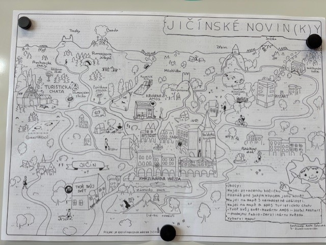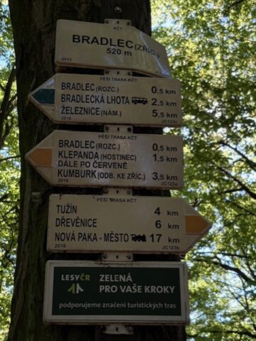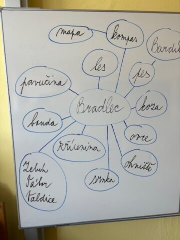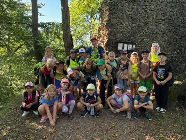 První týden nového školního roku jsme se vydali v rámci projektu Český ráj za poznáním našeho okolí na zříceninu hradu Bradlec. Od samého rána nás doprovázelo sluníčko a po celé dopoledne jsme si užívali krásného babího léta. Turistiku jsme doplňovali plněním úkolů ve skupinkách na stanovištích. Nad Bradleckou Lhotou se nám otevřel pohled na bránu do Českého ráje s vršky Veliš, Zebín, Tábor a vzdáleným Prachovem. Pod zříceninou Bradlece jsme se nasvačili a začali plnit naše první úkoly spojené s orientací v mapě. V mapě jsme si vyhledali Bradlec a místa v okolí, seznámili jsme se se světovými stranami i možnostmi jak je určit nejen pomocí kompasu, busoly, ale také přírody. Dalším úkolem byla orientace podle turistického značení. Diskutovali jsme o tom, proč a kde se používá, a také jaké barvy a proč se v naší přírodě používají. Z farmy pod zříceninou utekla ovečka, a tak jsme pomohli paní majitelce alespoň chvíli hledat. Bohužel jsme nebyli úspěšní ani my, ani hlídací pes Bardík, který se raději nechal drbat na břiše. Po 7 km trase jsme byli již tak vysílení, že jsme se těšili na dobrý oběd. Následující den jsme si pomocí myšlenkové mapy oživili výlet na Bradlec a pomocí souvisejícího filmového materiálu se podívali na další krásy Českého ráje. Projekt jsme zakončili plněním úkolů spojených s orientaci v dětském plánu Jičína a okolí.