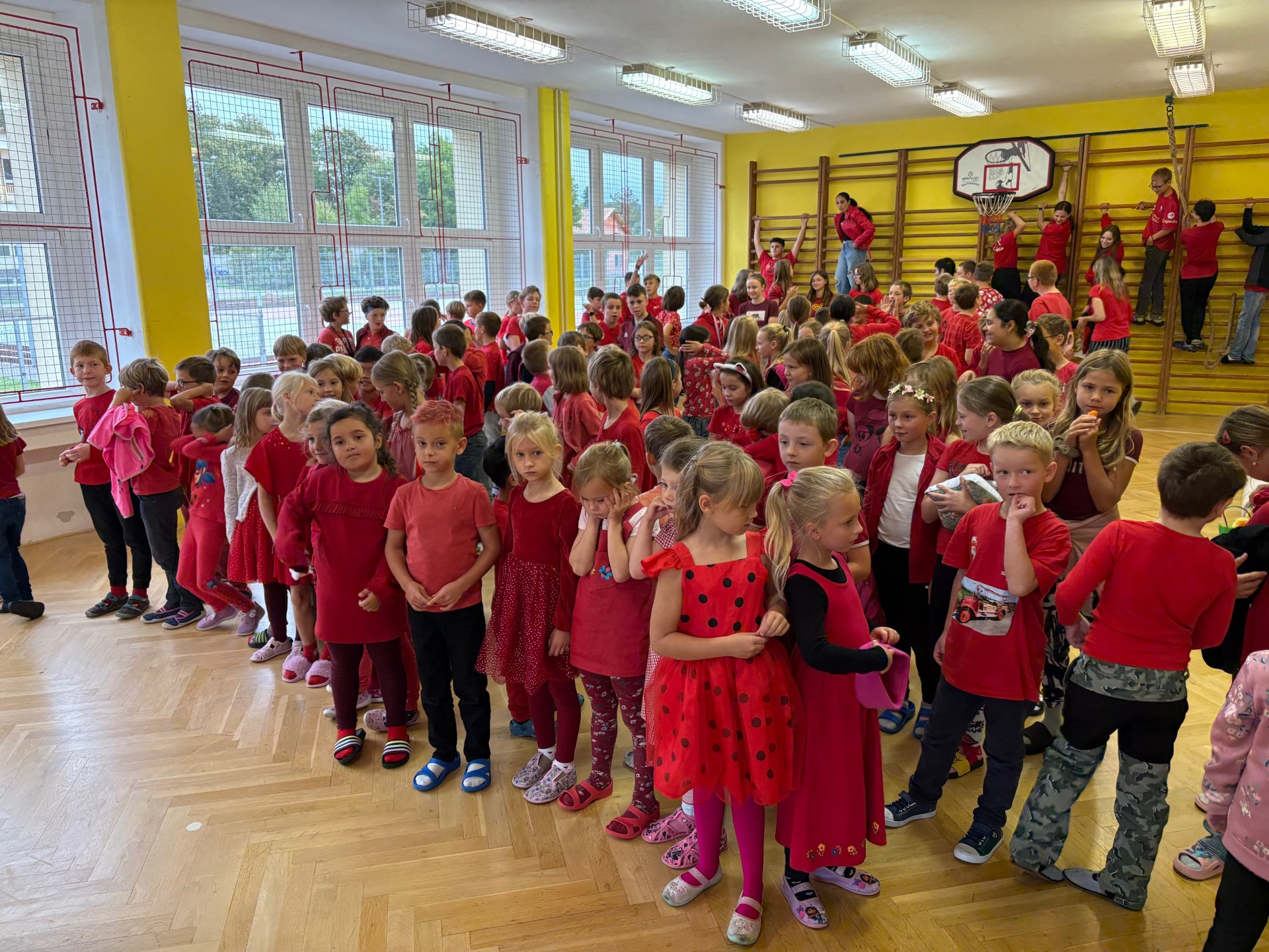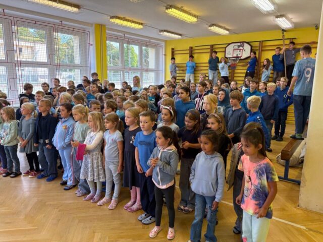 Na konci září mohli přijít rodiče do školy a mohli s námi poobědvat v naší školní jídelně. Byl to nevšední zážitek pro všechny. Rodiče vzpomínali, jak ve školní jídelně jako děti nesnášeli hrachovou kaši. 🙂 Naštěstí byl plátek masa a bramborová kaše.