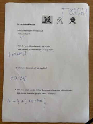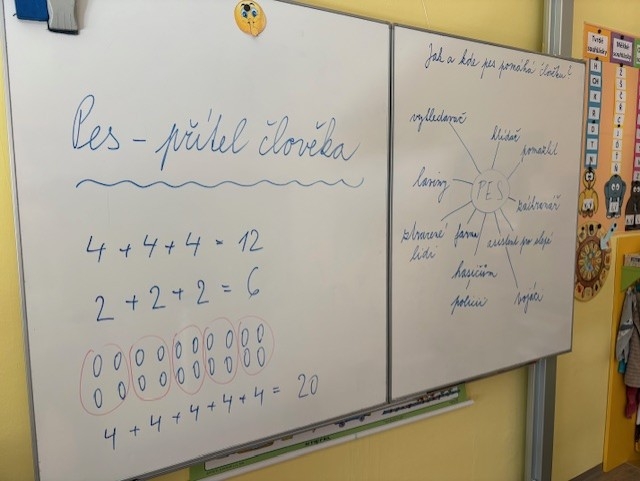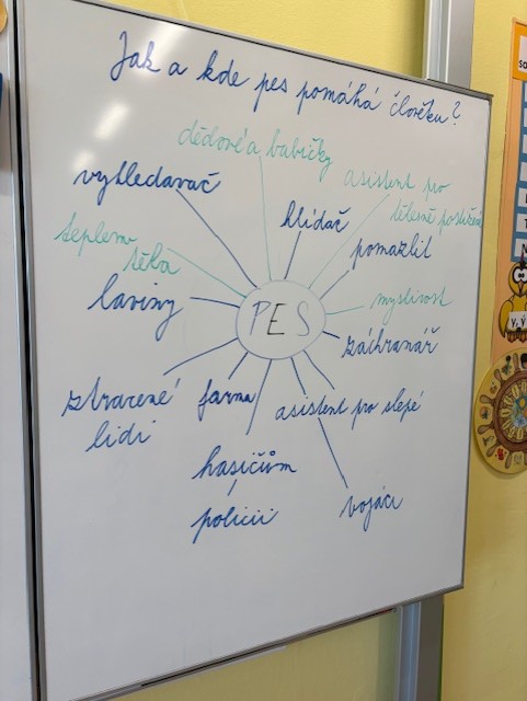 Pátek 17.října jsme věnovali projektovému dni na téma „Pes – přítel člověka“. Jak pes pomáhá lidem? Jak se pes uplatňuje v životě člověka? Je možné, že pes chodí do zaměstnání stejně jako lidé? Co mají lidé a pes společné? Nejen tyto ale i další otázky jsme si pokládali na začátku pestrého dne plného zajímavých úkolů, které jsme plnili samostatně nebo spoluprací ve skupinách. Pomocí myšlenkové mapy jsme si ověřovali stav našich vědomostí na začátku a pak opět na konci našeho pestrého pracovního dne. Střídali jsme práci s textem, obrázky a krátkým filmovým materiálem. Nové získané znalosti jsme uplatňovali v plnění úkolů v pracovních listech, kde se prolínaly český jazyk, s prvoukou a matematikou. A co nás zaujalo z nových informací nejvíce? Výcvik lavinových psů členy horské služby a vodících psů pro nevidomé s pravidly, jak se máme správně zachovat při procházce se svým mazlíčkem, když potkáme nevidomého s vodícím pejskem ….. Na závěr jsme si ověřili tvrzení z textu nádherné knížky o Gumpovi. Přátelství mezi člověkem a psem je něco, co pomáhá oběma – člověk dá domov a pes dá věrnost.