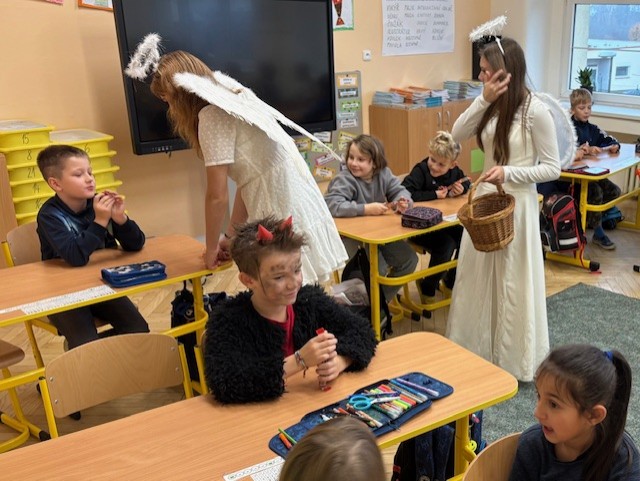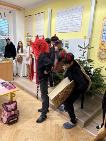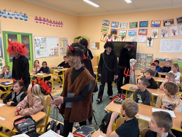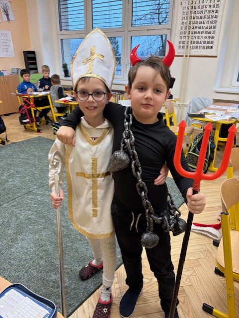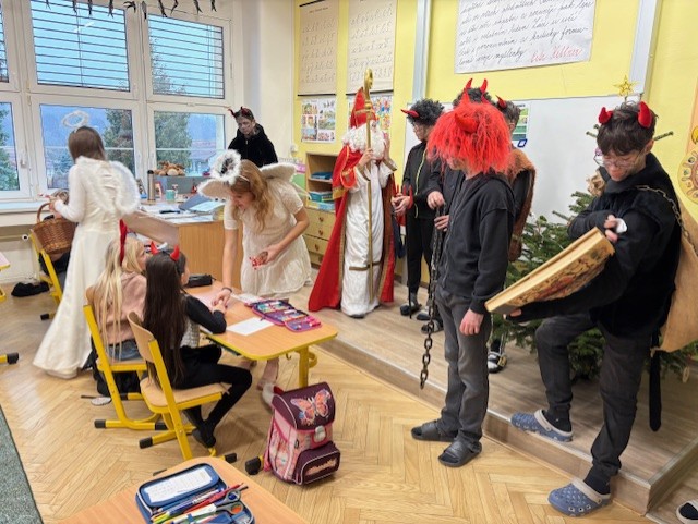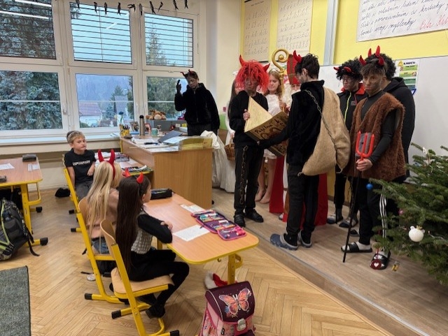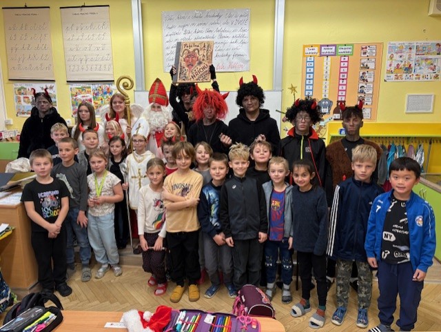 I naši třídu navštívil Mikuláš se svoji družinou. Měli jsme velký respekt z čertů, kteří na nás byli ale velmi hodní. Mikuláš nám přinesl Slabikář, a už můžeme číst…
